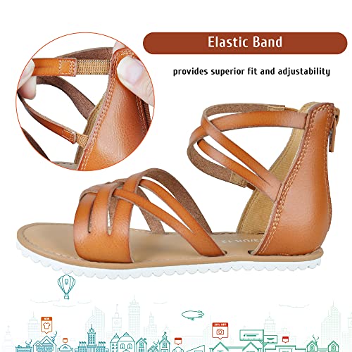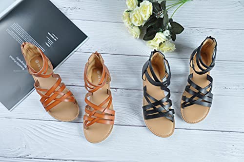 Harebell Gladiator Sandals for Girls Cross Strappy Gladiator Sandals with High Back Zipper Girls Summer Dress Sandals Brown 5